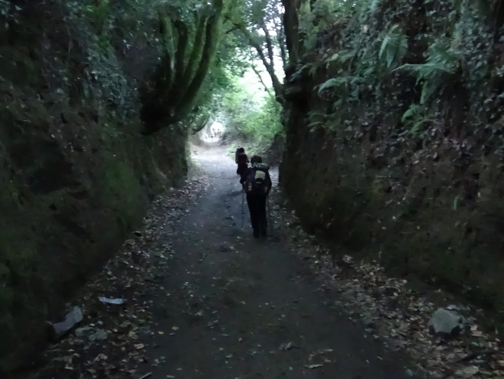 De kant waar ik heen moet ziet er echter veel dreigender uit. Ik loop even op met een Zuid-Koreaanse, gestart in Saint-Jean-Pied-de-Port, kwam om 19 uur in Roncesvalles aan en sliep toen in het hotel omdat de rest vol was. Om 5 weken de camino te kunnen doen moest ze ontslag nemen, omdat ze in Zuid-Korea niet zolang vrij kunnen krijgen. Na de camino gaat ze weer werk zoeken, ze is verpleegster, dus ze heeft goed hoop. Na San Antón loop ik weer eens door een mooie oude holle weg.