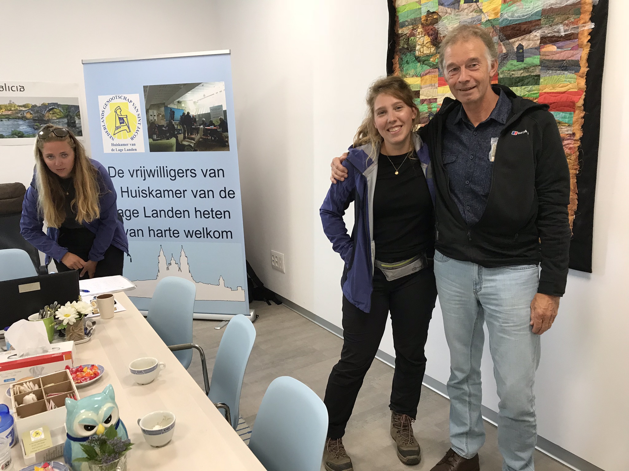 Na de lunch ga ik terug naar mijn kamer, dan schiet me ineens te binnen dat ik de Huiskamer vergeten ben. Aangezien ik geen heibel met Chris Strijbos wil ga ik nu meteen, het is inmiddels kwart over twee. In de Huiskamer worden net 2 pelgrims uitgezwaaid, er zitten nog een echtpaar en twee jongedames. Ik haak aan en schrijf alvast mijn naam in het register, omdat het toch pal voor mijn neus ligt. Nummer 2217 meen ik, in april waren we 98 en 99. Een half uur kletsen met de 2 meiden uit Uden, zijn op de fiets vanuit huis vertrokken. In Logroño bedachten ze, dat ze lopend meer contact met andere pelgrims zouden krijgen. Dus stuurden ze de fietsen en wat bagage terug naar huis en zijn verder gaan wandelen, heel apart! Als ze daarna hun namen in het register schrijven zegt er een, “ik ken ook een Rullmann, uit Nijmegen, Marlies heet ze”. Stik, das mijn dochter, zeg ik. Nou zeg, studiegenootjes op Artez, af en toe nog contact met elkaar. Ik herinner me nu dat Marlies mij voor mijn vertrek vertelde van iemand die zij kende, die onderweg was. Maar daaraan had ik totaal niet meer gedacht. Dat ik Wies uitgerekend vanmiddag hier moet zien, dat is toch geen toeval dat ik gisteren finaal vergeten ben naar de Huiskamer te gaan???