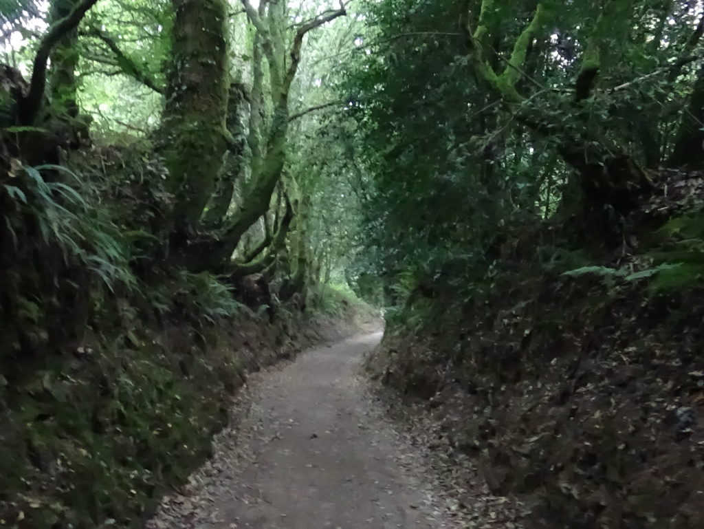 Het is een prachtige route vanmorgen, min of meer parallel aan de autobaan maar er ver genoeg van verwijderd. Ik kom langs een oude, vervallen horreo dicht bij de autobaan. De boerderij moest ervoor wijken, maar de horreo is beschermd als monument en moest blijven staan. Geen foto, wel op de film. Na de kleine herberg van As Paredes na 6 km kom ik door een mooie oude holle weg.
