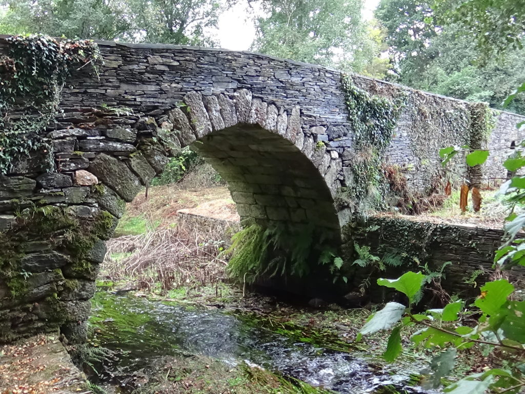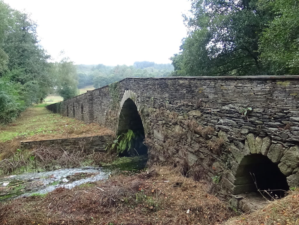 Bij de bar zitten enkele pelgrims, waaronder Kurt en Debby, zij waren al vroeg wakker omdat enkele pelgrims al een uur voor het licht wordt op pad gaan. Waar je maar zin in hebt! De route gaat onder de autobaan door en komt dan bij de middeleeuwse brug over de Río Labrada, de Ponte de Saa.