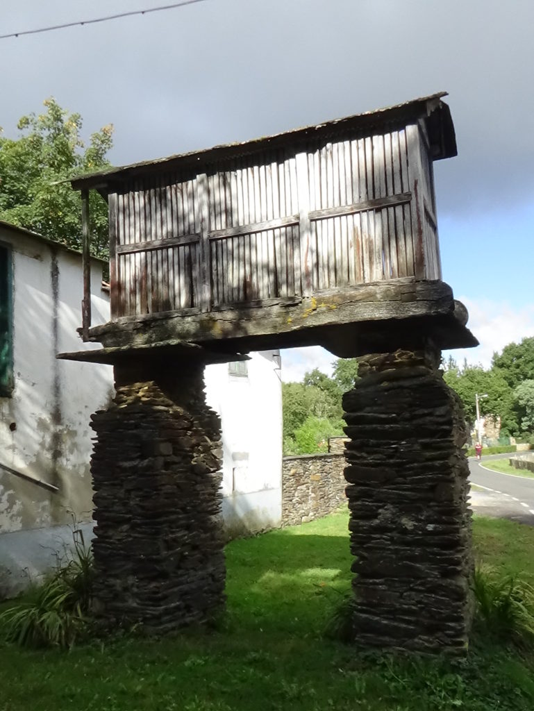 Erg mooi hier, doet me denken aan de bruggen op enkele andere camino’s, een echte caminosfeer hangt hier. Na deze brug is de route duidelijk minder qua natuurschoon, teveel asfaltwegen en weinig dat indruk maakt. Enkele nietszeggende gehuchtjes, bij Pacios een bijzonder gebouwde horreo.