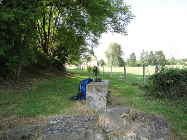 Vanmorgen gebruik ik in de la Poste eerst een echt Frans ontbijtje, iets na achten ga ik op stap. Na 8,7 km volgens de route (en volgens mijn teller 11 km) vind ik in Champlény een bar, lekker kouwe cola op het terras in de schaduw. Het is inmiddels vrij warm geworden. Kort ervoor heb ik bij het kerkje van Champlény al pauze gehouden op een steen en daar via mijn mobieltje mijn weblog bijgewerkt. Gisteravond had ik een uur lang een reisbericht zitten typen op mijn mobieltje, toen ik het wilde opslaan op mijn weblog viel de verbinding weg, en mijn typewerk ook. Gelaten accepteer ik deze “tegenslag”, het is niet anders. Na de cola en naast de bar koop ik 3 tomaten en een blikje spaghetti bolognese, want op het eindpunt in Arbourse is volgens de gids niets te krijgen.