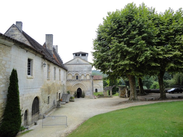 Om 6 uur beginnen de medepelgrims al te rommelen, om 6.30 uur sta ik op, om 7.30 uur vertrekken we richting Saint-Astier is de bedoeling. Onze gids is Michel, die later blijkt zo snel te lopen dat zijn schoenen geen tijd krijgen een afdruk achter te laten. Luc loopt met een bourdon! Zodra we starten vliegt Michel uit zijn sokken, wij houden echter ons eigen tempo aan. Bij Chancelade na 8 km krijgen we nauwelijks tijd om de oude benedictijner abdij te bezichtigen, eigenlijk wil Michel doorlopen. Na bijna 13 km roepen we dat we pauze gaan houden, Michel roept “cinq minutes”. Na 5 minuten gooit hij zijn rugzakje weer om en wil weer verder, nou, succes ermee, wij blijven zitten. Na 20 minuten komen we overeind en hij vliegt meteen een steil paadje op. Al snel lopen Luc, Incy, Flora en ik achteraan, wel zo rustig, de rest verdwijnt uit beeld en bij een splitsing een stuk verderop is er niemand die gewacht heeft. Linksom de GR of rechtsom de chemin Saint Jacques, wat doen we? De chemin dan maar. Na ruim 18 km hebben we eindelijk bebouwde kom (Gravelle) met een terrasje, colaatje dus. Daarna kopen we bij de épicerie wat te eten en gebruiken de lunch in het naast de bar gelegen park. Na 5 kwartier pauze waarin we ook een verblijf voor donderdag uitzoeken en reserveren willen we verder, als J-J vanuit een andere straat ineens aankomt. Hevig op zoek naar wat te drinken zakt hij op een terrasstoel, zwaar teleurgesteld in de groep die niet wilde wachten toen hij een pauze wilde om wat te eten. We besluiten onze rugzak weer af te doen en gaan bij hem zitten totdat hij genoeg gerust heeft. Het doet hem zichtbaar goed dat wij bij hem blijven, na 20 minuten gaan we met zijn vijven verder.